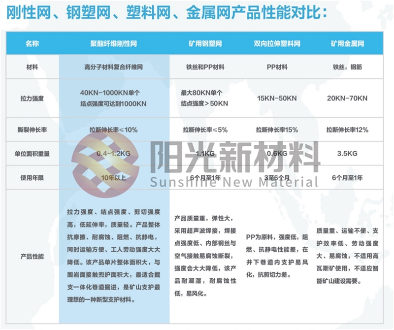 在各類工程支護(hù)場景中,山東陽光新材料科技有限公司的高強(qiáng)聚酯纖維剛性網(wǎng)憑借其卓越的性能,成為當(dāng)之無愧的全能選手。這款剛性網(wǎng)以高強(qiáng)度聚酯纖維為核心材料,通過特殊工藝編織而成,具備諸多獨(dú)特優(yōu)勢。