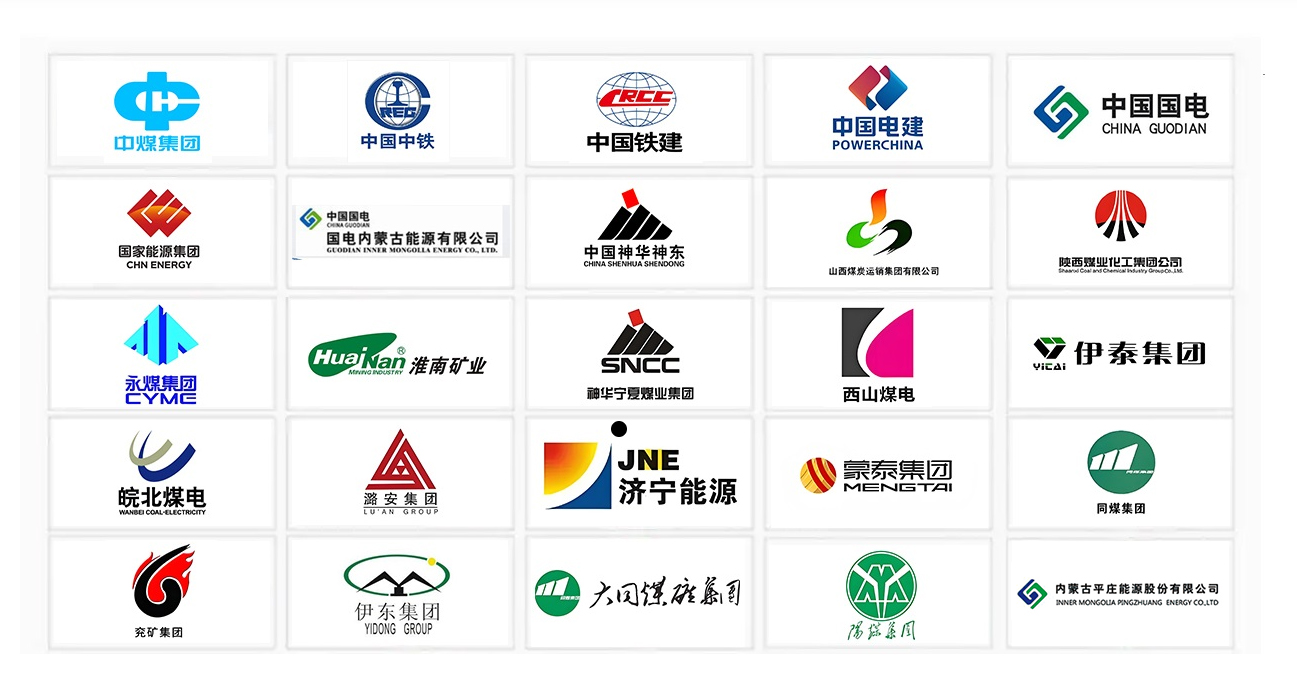 中煤、國家能源集團、西山煤電、中國中鐵、中國電建、中國鐵建、中國交建、兗礦集團、蒙泰集團、神華寧夏煤業(yè)集團、永煤集團、皖北煤電、淮南礦業(yè)、山西煤炭運銷集團、陜西煤業(yè)、同煤集團、陽煤集團、伊東集團、山西潞安集團、國電內(nèi)蒙古能源有限公司、寧煤集團、濟寧能源、新疆伊犁能源、內(nèi)蒙古平煤集團、伊泰、淄博礦務(wù)局、中交上海航道局有限公司、通號建設(shè)集團貴州工程有限公司、中鐵三局集團建筑安裝工程有限公司、中鐵七局集團物資貿(mào)易有限公司、中交一航局第二工程有限公司、中建筑港集團有限公司、神木縣烏蘭色太煤炭有限公司、青海西寧鐵邁煤礦、內(nèi)蒙古平莊能源股份有限公司風(fēng)水溝煤礦、波蘭煤礦等,并出口多個國家。